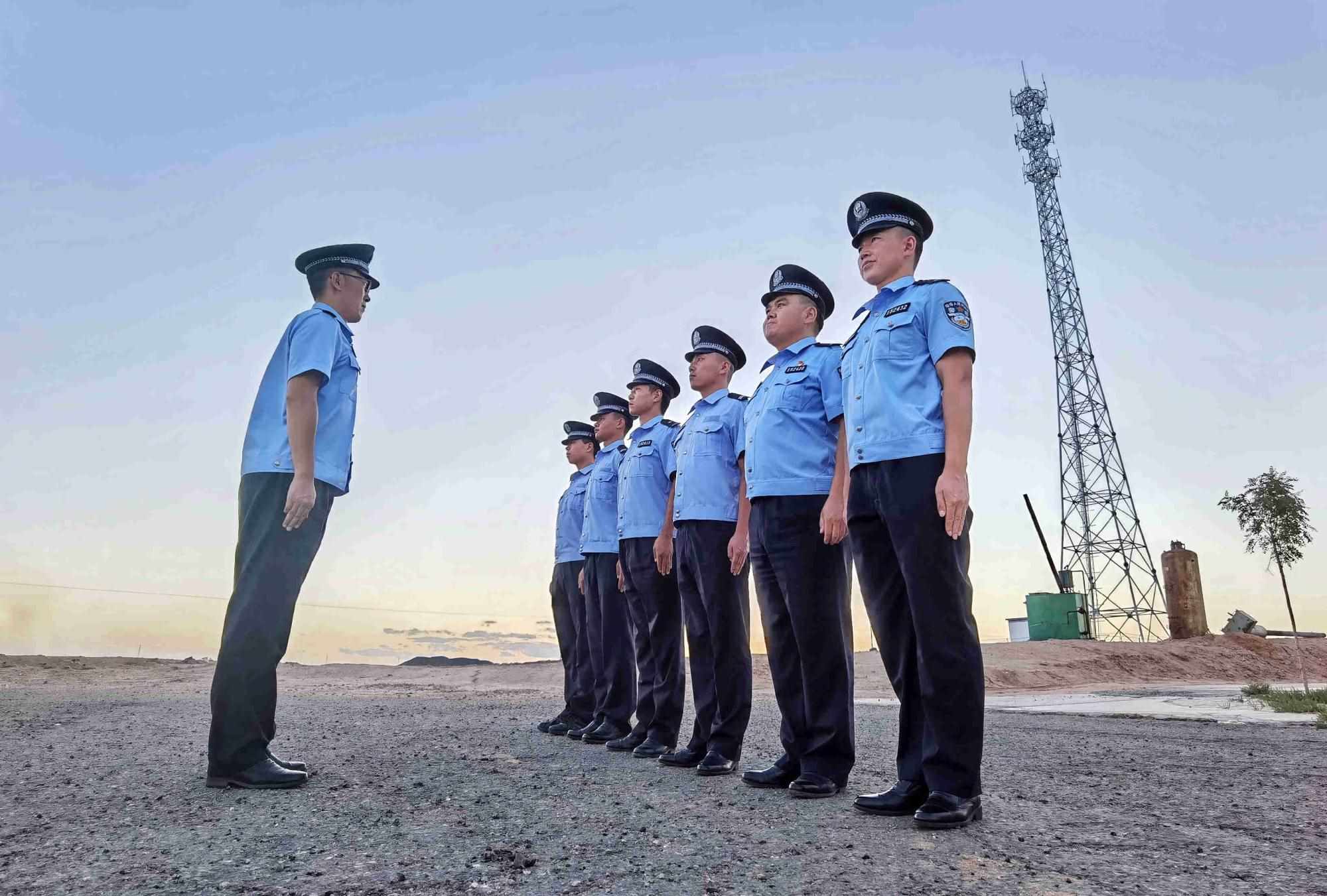8月4日,內(nèi)蒙古出入境邊境檢查總站阿拉善邊境管理支隊(duì)塔木素布拉格邊境派出所組織開展隊(duì)列訓(xùn)練,培養(yǎng)民警令行禁止的工作作風(fēng),助力全警實(shí)戰(zhàn)大練兵。(王鵬飛攝)