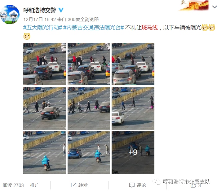 為實(shí)現(xiàn)斑馬線交通安全“三提升一下降”(機(jī)動(dòng)車禮讓斑馬線和行人、非機(jī)動(dòng)車守法意識明顯提升,輿論宣傳倡導(dǎo)“機(jī)動(dòng)車禮讓斑馬線”的深度與廣度不斷提升,群眾對城市交通管理的滿意度顯著提升;因不禮讓斑馬線導(dǎo)致人員傷亡的交通事故發(fā)案率大幅下降)的目標(biāo),按照交管支隊(duì)關(guān)于開展集中整治機(jī)動(dòng)車不禮讓斑馬線行動(dòng)方案的統(tǒng)一部署,支隊(duì)指揮中心運(yùn)用高科技手段,利用高清視頻探頭抓拍機(jī)動(dòng)車不禮讓斑馬線等交通違法行為,并錄入道路交通管理綜合應(yīng)用平臺。自2020年12月12日至12月31日,利用大屏監(jiān)控設(shè)備抓拍260條,錄入系統(tǒng)并予以曝光。