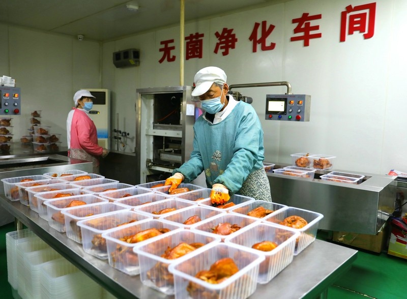 當(dāng)日上午,媒體團(tuán)成員進(jìn)入加工車間實地了解熏雞、熏蛋、熏肉等特色產(chǎn)品生產(chǎn)加工過程。據(jù)了解,卓資縣的熏雞每年銷量約為400萬只,產(chǎn)值2個億,帶動了當(dāng)?shù)厝罕娒撠氈赂唬钦嬲母幻駨?qiáng)縣產(chǎn)業(yè)。目前,卓資熏雞在繼承傳統(tǒng)工藝的基礎(chǔ)上,引進(jìn)鎖鮮包裝,使熏雞保鮮期由原來的7天增加到15天,并進(jìn)入電商平臺面向全國銷售。