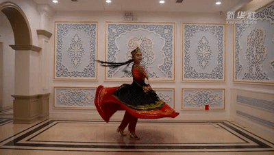 “左旋右轉(zhuǎn)不知疲,千匝萬周無已時(shí)。人間物類無可比,奔車輪緩旋風(fēng)遲?!背錆M活力的跳躍和旋轉(zhuǎn)是胡旋舞最顯著的特征。而經(jīng)過千年的融合與傳承,這一元素已深深融入到中國和中亞國家多種舞蹈形式當(dāng)中。
