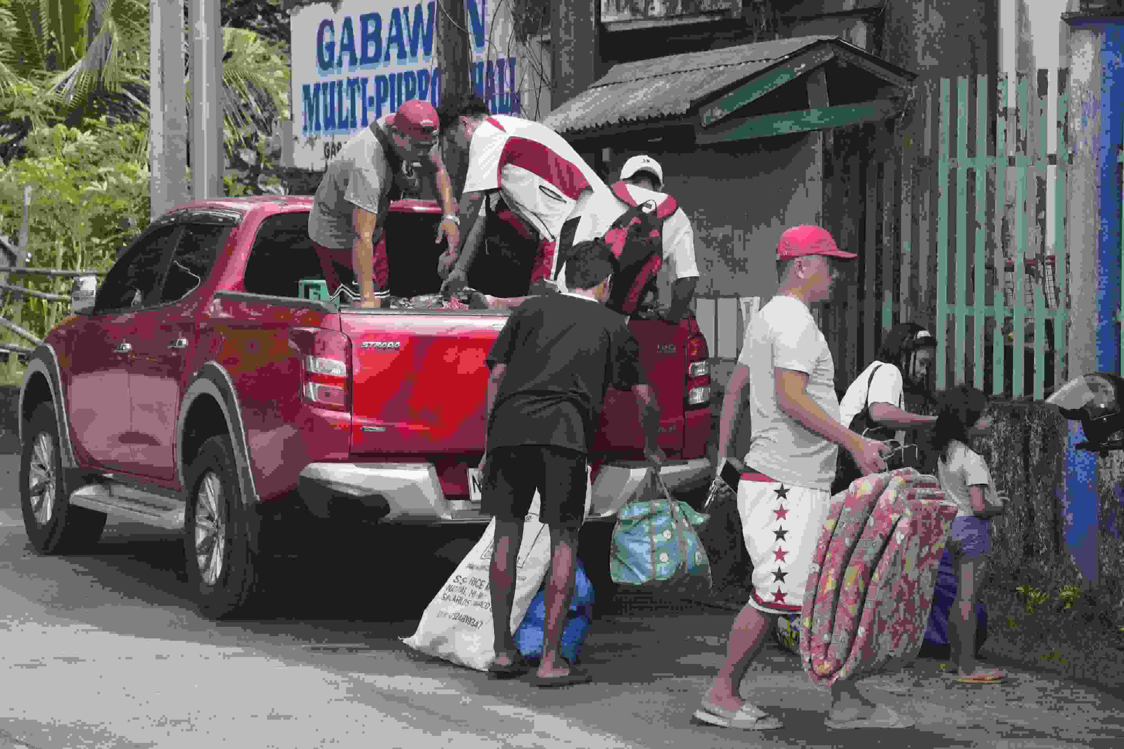 當(dāng)?shù)貢r間2023年6月10日,菲律賓阿爾拜省,撤離人員帶著他們的物品抵達(dá)臨時安置點(diǎn)。 視覺中國
