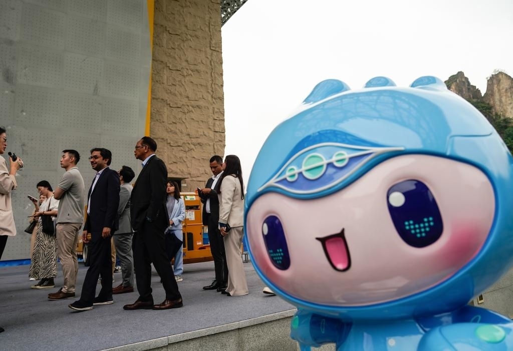 在自動(dòng)檢測(cè)產(chǎn)品外觀缺陷的視覺質(zhì)檢機(jī)器人前,使節(jié)們停下腳步,饒有興致地觀看?;瘕堈f:“在數(shù)字經(jīng)濟(jì)推動(dòng)下,人工智能等技術(shù)與傳統(tǒng)工業(yè)深度結(jié)合,讓人耳目一新。”