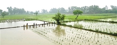 時(shí)值正午,驕陽似火。在拉合爾西南郊的一處雜交水稻試驗(yàn)田里,來自中國湖南的農(nóng)業(yè)專家龍春久正在同當(dāng)?shù)剞r(nóng)民和技術(shù)員一起進(jìn)行雜交水稻選種試驗(yàn)。頭戴草帽,褲腳挽至膝蓋,龍春久在泥濘的水田里彎腰插秧,汗水從他黝黑的面龐上淌下。