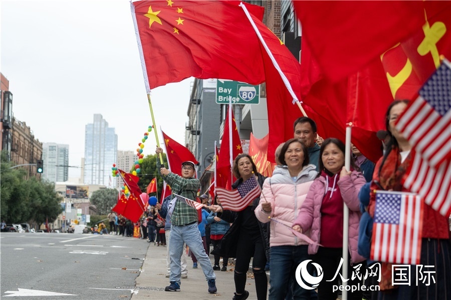 習(xí)近平乘坐的車隊(duì)離開機(jī)場(chǎng)前往下榻飯店途中,許多華僑華人和中國留學(xué)生代表等候在沿途街道,揮舞中美兩國國旗,熱烈歡迎習(xí)近平主席到訪。