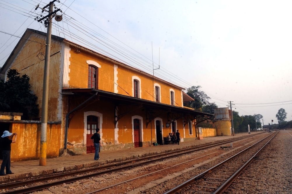 這是滇越鐵路上當(dāng)時(shí)仍在使用的法式建筑風(fēng)格的碧色寨火車站(2010年3月19日攝)。