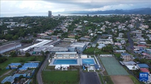 這是1月12日在斐濟蘇瓦航拍的中方援建翻修的室外游泳池。新華社發(fā)(桑欽龍攝)