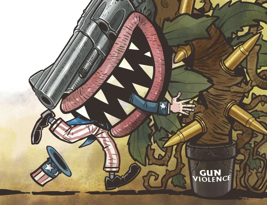 過于頻繁的槍支暴力事件已經(jīng)將美國社會吞沒。(來源:中國日報 作者:蔡艨)
