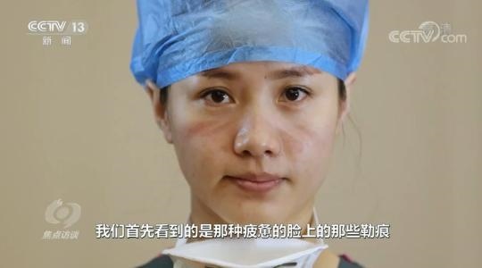 中國文聯(lián)第十一次全國代表大會代表、中國攝影家協(xié)會主席李舸說:“摘下口罩那一下,我們首先看到的是疲憊的臉上的那些勒痕,甚至有很多都是破的傷口,但是他們用很簡單的方法處理,那種堅(jiān)毅的眼神讓我們感觸特別深?!?/p>