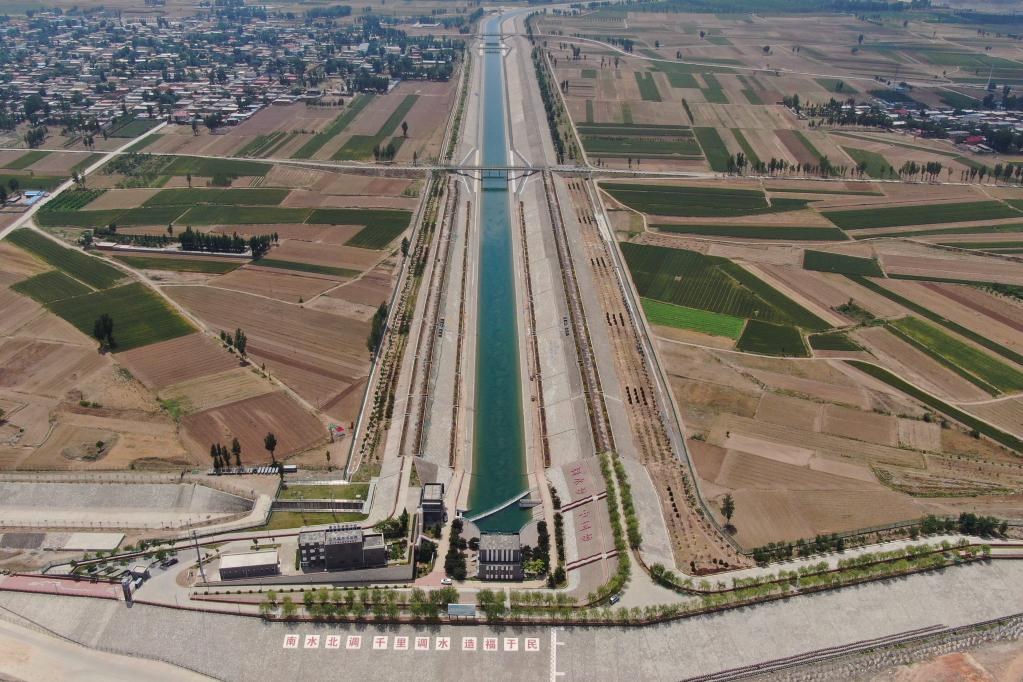 圖為南水北調(diào)中線位于京冀交界處的明渠和北拒馬河暗渠節(jié)制閘,北拒馬河暗渠節(jié)制閘是進入北京的南水從明渠轉(zhuǎn)入暗涵的交接點。
