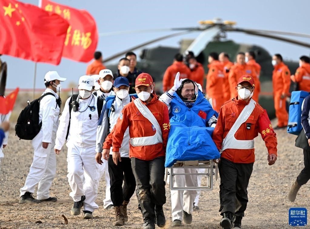 6月4日,神舟十五號(hào)載人飛船返回艙在東風(fēng)著陸場(chǎng)成功著陸,神舟十五號(hào)載人飛行任務(wù)取得圓滿成功。這是航天員鄧清明安全順利出艙。新華社記者 連振 攝