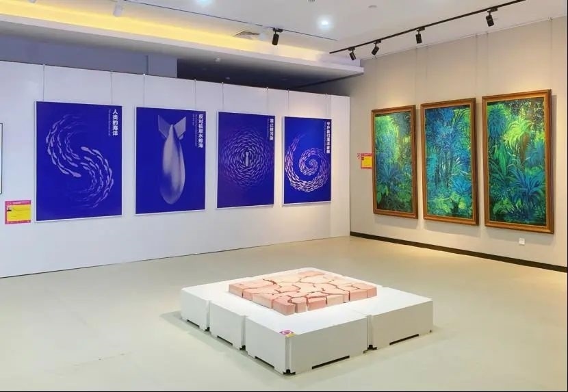 本次展覽以油畫(huà)、版畫(huà)、國(guó)畫(huà)、影像、雕塑、裝置藝術(shù)以及創(chuàng)新設(shè)計(jì)等多種形式,回應(yīng)著藝術(shù)家們對(duì)于“生態(tài)流變”這一意象與內(nèi)涵的理解,以及對(duì)“環(huán)境共生”這一問(wèn)題的思考與探索。
