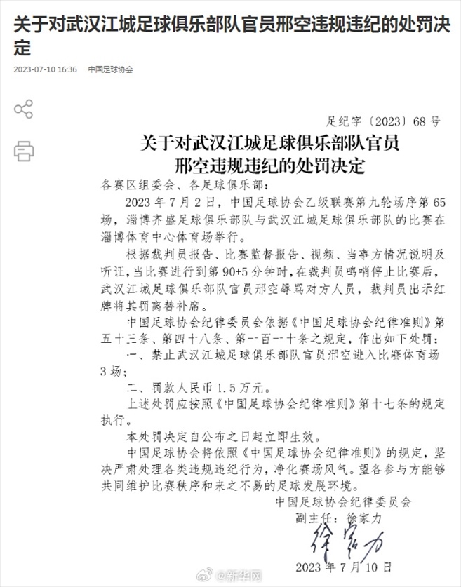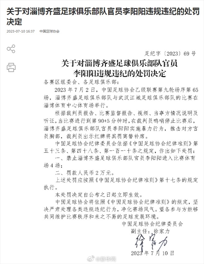 ·中國足協(xié)再開罰單,兩名俱樂部官員因違規(guī)違紀被罰。