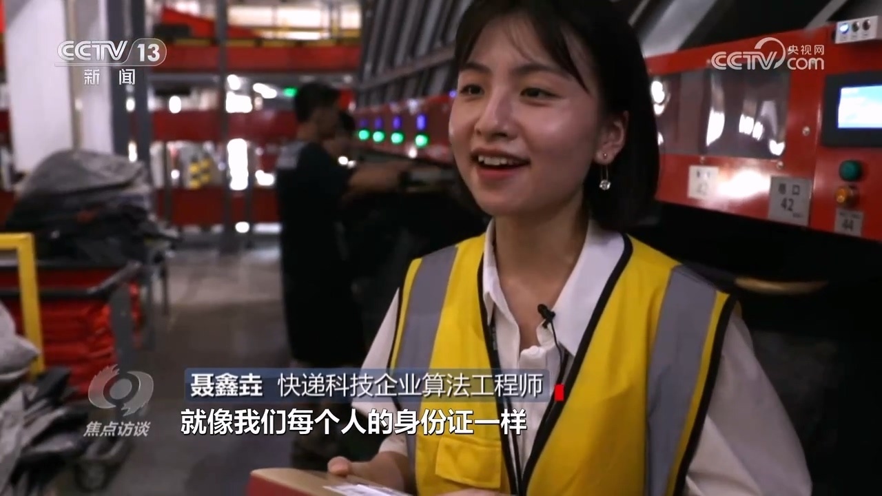 快遞科技企業(yè)算法工程師聶鑫垚:“像這一票件它都有自己的面單,就像我們每個人的身份證一樣,然后上面有一維碼,還有二維碼。當(dāng)快遞經(jīng)過一個叫六面掃的設(shè)備的時候,就可以把碼掃描出來,這個碼里面會涵蓋快件的生命信息?!?/p>