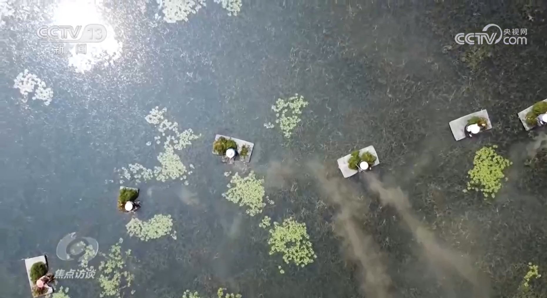 于丹:“采用立體種草,比方說(shuō)有的深水區(qū)種兩層草,使得整個(gè)水層立體空間都有水草分布,另外從深水區(qū)到沿岸帶,沉水植物到浮葉植物到挺水植物到河塘?!?/p>