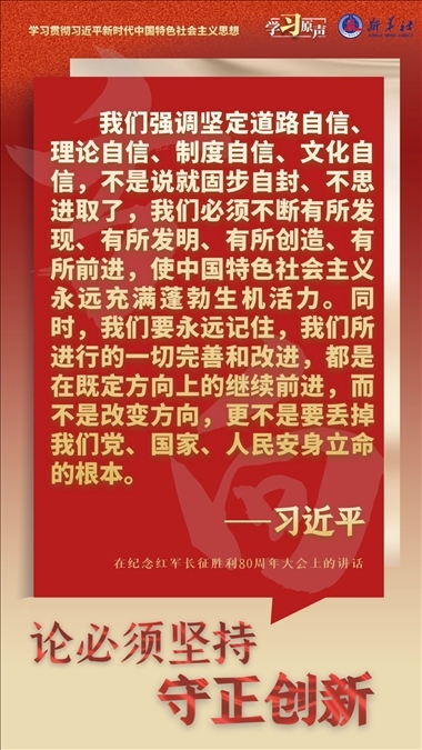 我們從事的是前無古人的偉大事業(yè),守正才能不迷失方向、不犯顛覆性錯(cuò)誤,創(chuàng)新才能把握時(shí)代、引領(lǐng)時(shí)代。我們要以科學(xué)的態(tài)度對待科學(xué)、以真理的精神追求真理,堅(jiān)持馬克思主義基本原理不動(dòng)搖,堅(jiān)持黨的全面領(lǐng)導(dǎo)不動(dòng)搖,堅(jiān)持中國特色社會(huì)主義不動(dòng)搖,緊跟時(shí)代步伐,順應(yīng)實(shí)踐發(fā)展,以滿腔熱忱對待一切新生事物,不斷拓展認(rèn)識(shí)的廣度和深度,敢于說前人沒有說過的新話,敢于干前人沒有干過的事情,以新的理論指導(dǎo)新的實(shí)踐。