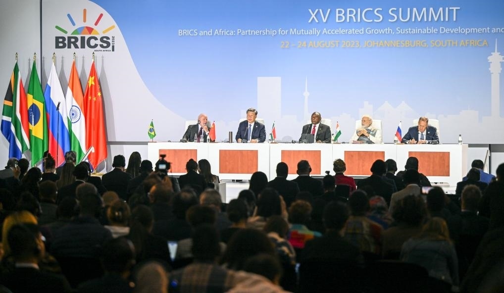 23日,在出席金磚國家領(lǐng)導(dǎo)人第十五次會晤時,習(xí)近平主席強(qiáng)調(diào),加速擴(kuò)員進(jìn)程,讓更多國家加入到金磚大家庭,集眾智、匯群力,推動全球治理朝著更加公正合理的方向發(fā)展。
