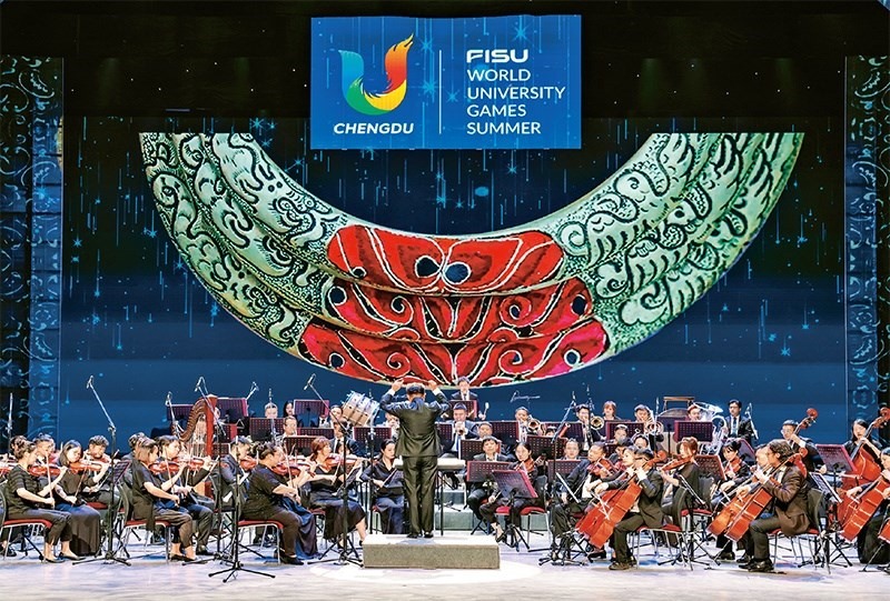 圖為2023年7月30日,音樂家在為參加成都大運會的各代表團成員演奏《瑤族舞曲》。 新華社記者 沈伯韓/攝
