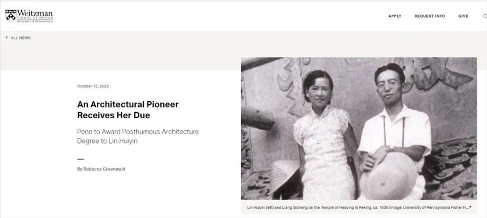 ·美國賓夕法尼亞大學(xué)宣布將追授林徽因建筑學(xué)學(xué)位。