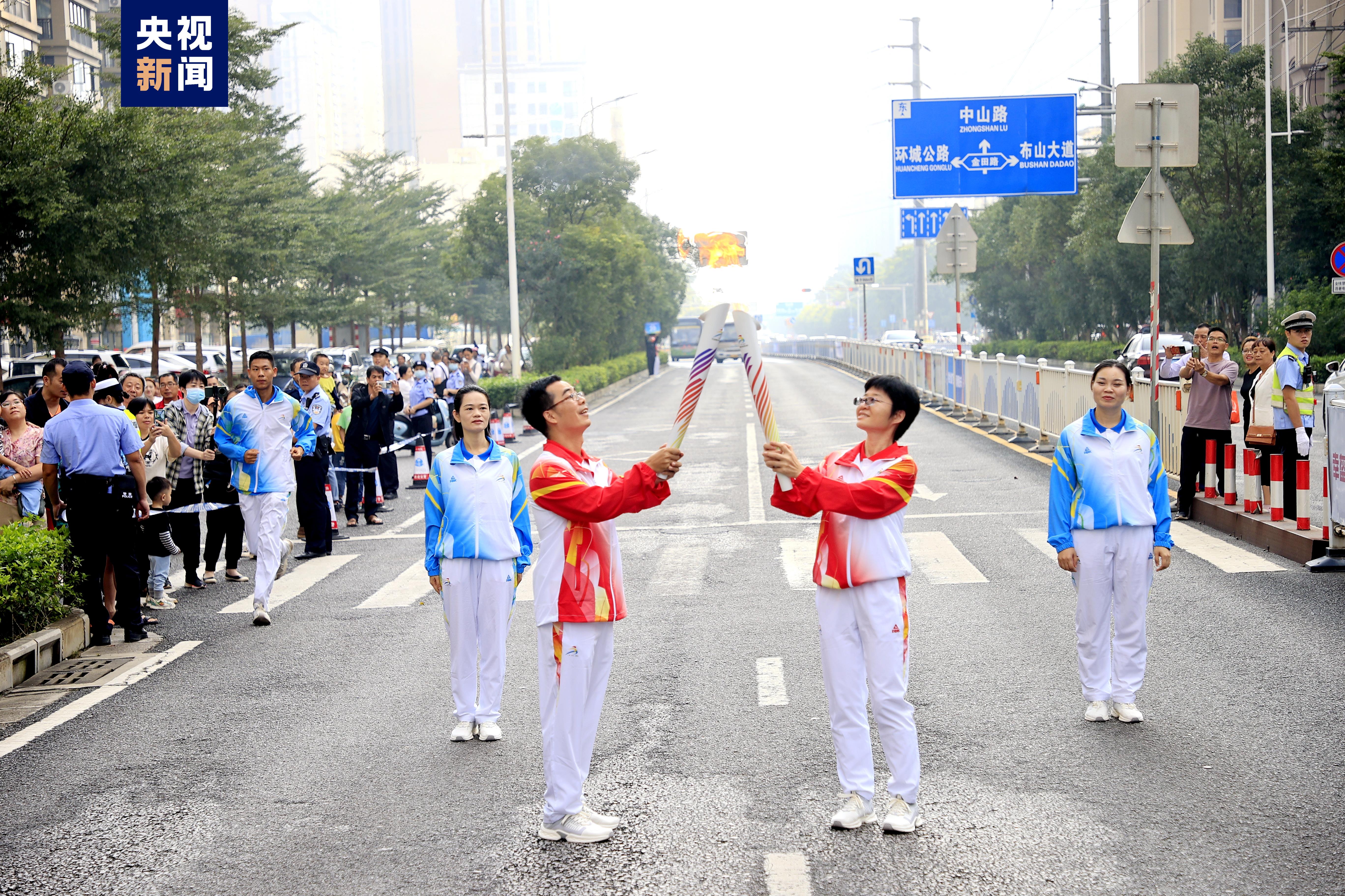 11月4日上午,第一屆全國學生(青年)運動會火炬在貴港傳遞。