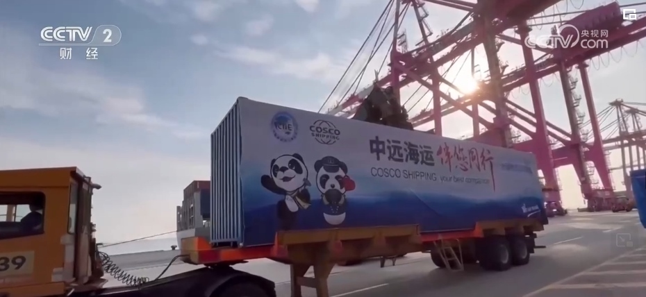 央視財(cái)經(jīng)記者 金荷淼:進(jìn)博會(huì)的吉祥物“進(jìn)寶”戴著的這條圍巾是黃藍(lán)相間的,黃色代表“絲綢之路經(jīng)濟(jì)帶”,藍(lán)色代表“21世紀(jì)海上絲綢之路”,這恰恰體現(xiàn)著進(jìn)博會(huì)與 “一帶一路”的密切聯(lián)系。今年“進(jìn)博號(hào)”中歐班列共發(fā)行3列,承運(yùn)貨值超過3.5億元人民幣,較上屆進(jìn)博會(huì)增長(zhǎng)近三倍。浦東機(jī)場(chǎng)貨運(yùn)站保障參會(huì)展品物資重量超20噸,較上屆進(jìn)博會(huì)增長(zhǎng)超五成。正是這一場(chǎng)場(chǎng)跨越萬里的接力賽,搖響了新時(shí)代國際貿(mào)易的“駝鈴”。