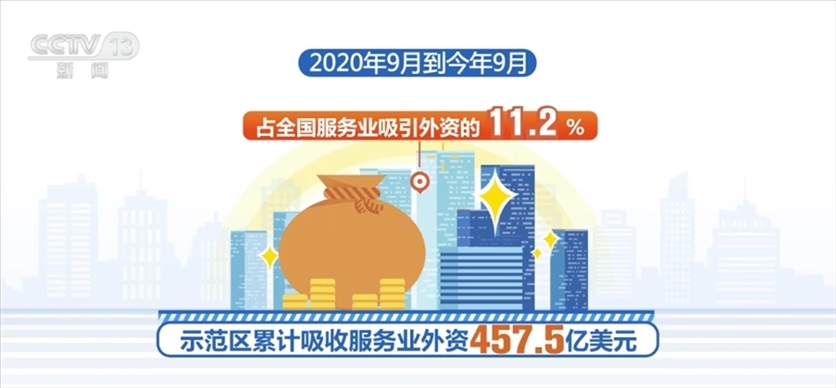 2020年9月到今年9月,示范區(qū)累計吸收服務(wù)業(yè)外資457.5億美元,占全國服務(wù)業(yè)吸引外資的11.2%;今年上半年,示范區(qū)服務(wù)業(yè)增加值占北京市地區(qū)生產(chǎn)總值比重達(dá)85.9%。