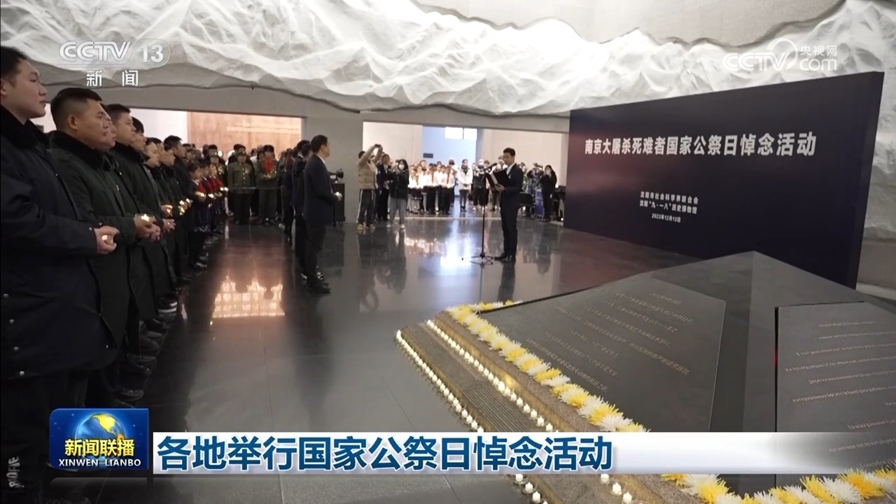 央視網(wǎng)消息(新聞聯(lián)播):今天(12月13日),各地舉行國(guó)家公祭日悼念活動(dòng),銘記歷史、珍愛和平,凝聚奮進(jìn)力量。