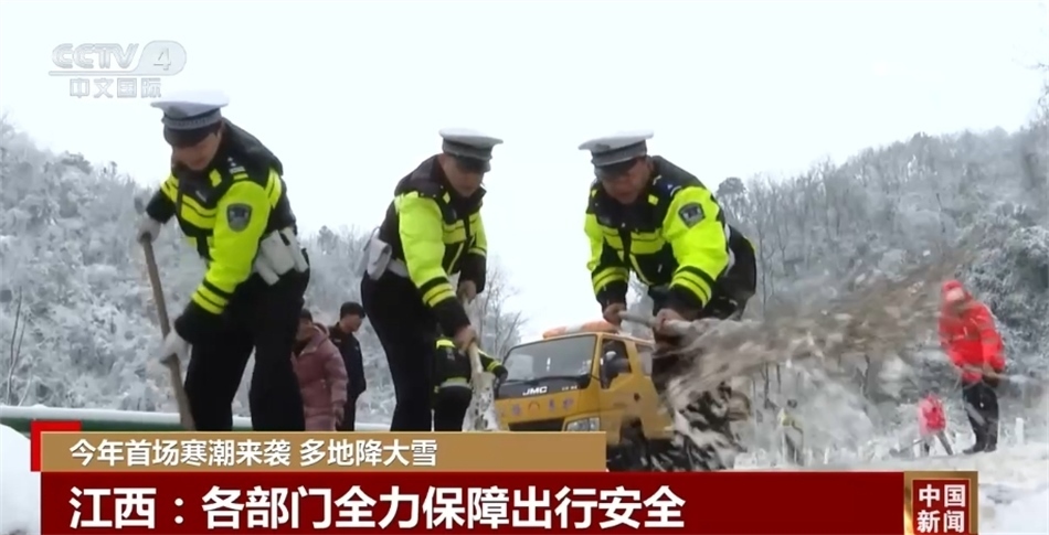 從21日開始,江西各地迎來(lái)了今年首場(chǎng)大范圍降雪天氣。德安縣迅速啟動(dòng)惡劣天氣應(yīng)急預(yù)案,加強(qiáng)重點(diǎn)路口、路段的交通秩序管控。在梅嶺風(fēng)景區(qū),因?yàn)榇笱?、路面出現(xiàn)結(jié)冰,當(dāng)?shù)夭扇 跋迺r(shí)、限路、限流”的工作措施,對(duì)景區(qū)道路適時(shí)實(shí)施交通管制,保障游客出行游玩安全。在九江市武寧縣,工作人員清理倒伏的樹枝、撒融雪劑、鏟冰除雪、疏導(dǎo)交通,為過(guò)往的司機(jī)提供幫助。