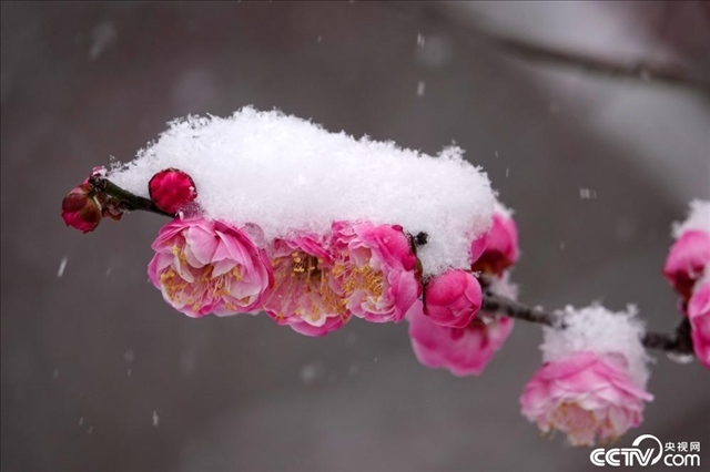 1月22日,貴陽迎來降雪天氣,阿哈湖國家濕地公園里的梅花傲然綻放,吸引游客前來賞梅。