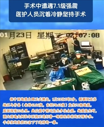 ·1月23日2時9分,阿克蘇地區(qū)烏什縣發(fā)生7.1級地震,地震發(fā)生時,浙大邵逸夫阿拉爾醫(yī)院正進行一場神經外科的開顱手術。
