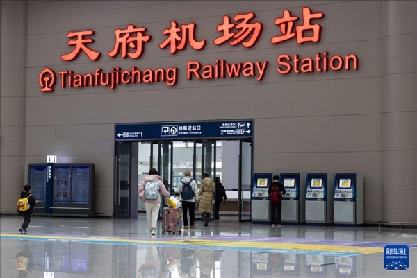 1月26日,旅客走進(jìn)天府機(jī)場綜合交通換乘中心(GTC)天府機(jī)場高鐵站。新華社記者 江宏景 攝
