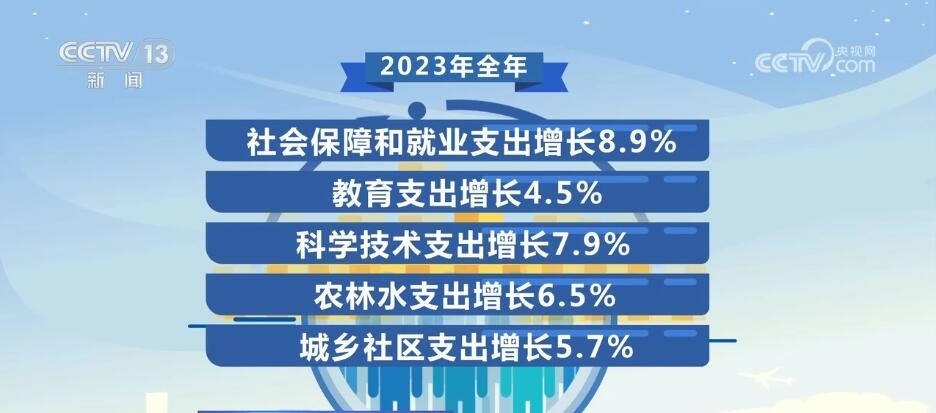 在我國,民生投入不僅總量大,而且增速也很可觀。比如2023年全年,社會保障和就業(yè)支出增長8.9%,教育支出增長4.5%,科學技術(shù)支出增長7.9%,農(nóng)林水支出增長6.5%,城鄉(xiāng)社區(qū)支出增長5.7%。