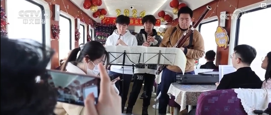 隨著春節(jié)臨近,在外務(wù)工的游子們紛紛踏上了回家的旅途。在青島北開往成都西Z318次列車上,悅耳歡快旋律響起,列車工作人員邀請(qǐng)3位學(xué)生旅客,為大家演奏了悠揚(yáng)歡快的樂曲。