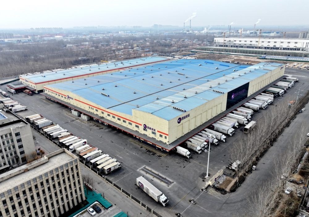2024年2月4日拍攝的河北永清經(jīng)濟(jì)開(kāi)發(fā)區(qū)的圓通速遞北方總部基地(無(wú)人機(jī)照片)。新華社記者 王曉 攝