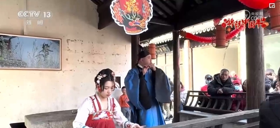 春節(jié)期間,伴隨著陣陣《茉莉花》的悠揚(yáng)樂聲,在江南水鄉(xiāng)黎里古鎮(zhèn)的迎恩坊,游客市民欣賞演奏團(tuán)隊(duì)奏響的新年歡樂樂章。石板道兩旁都換上了喜慶的紅色裝飾,糖畫攤、丟圈兒游戲的攤位前擠滿了躍躍欲試的人群。這幾天,黎里古鎮(zhèn)已經(jīng)迎來超過5萬名游客,較2023年同期翻了兩番。
