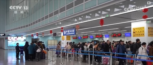 在吳淞口國際郵輪港T2航站樓邊檢查驗大廳看到,一批批旅客在工作人員引導下有序排隊候檢。