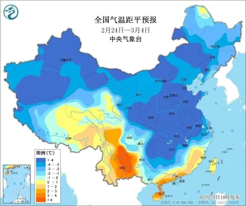 其中,今起至27日,黃淮南部、江淮中西部、江漢、江南中西部、華南西部、貴州大部、四川盆地以及新疆北部、內(nèi)蒙古西部、甘肅西部等地的日平均氣溫或最低氣溫較常年同期偏低5至7℃,湖北中東部、湖南、貴州東部、廣西北部等地部分地區(qū)偏低7℃以上,其間最低氣溫0℃線將位于浙江中北部、江西北部至湖南南部、貴州南部一帶。