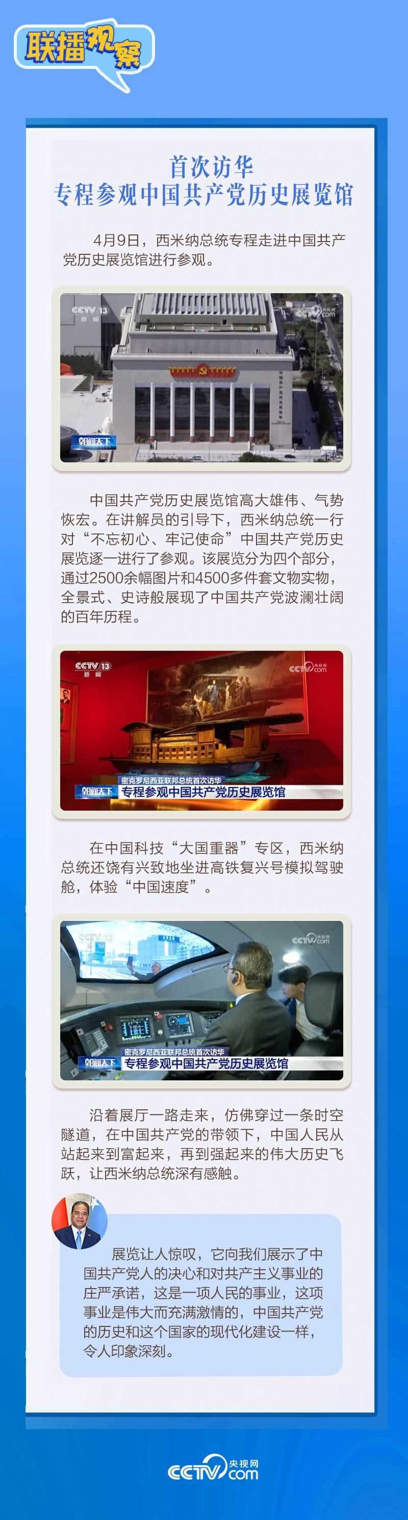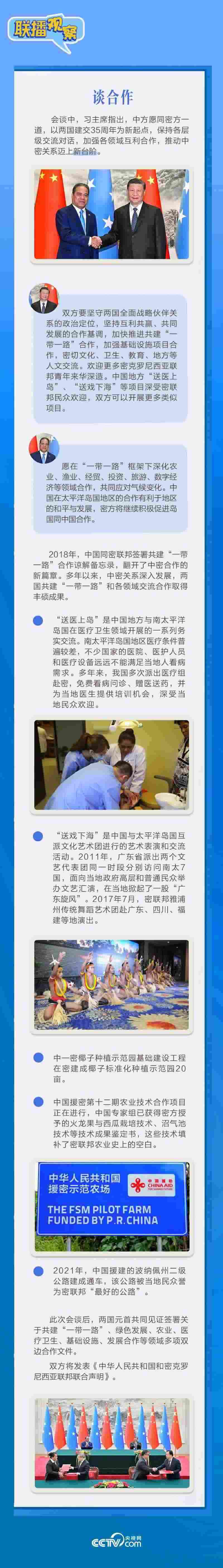 應(yīng)習(xí)近平主席邀請,密克羅尼西亞聯(lián)邦總統(tǒng)韋斯利·西米納于4月5日至12日對中國進(jìn)行國事訪問。4月9日下午,習(xí)近平主席在北京人民大會堂同西米納總統(tǒng)舉行會談,就雙邊關(guān)系發(fā)展及共同關(guān)心的問題深入交換意見。雙方會談哪些細(xì)節(jié)值得關(guān)注?央視網(wǎng)《聯(lián)播觀察》帶您了解。