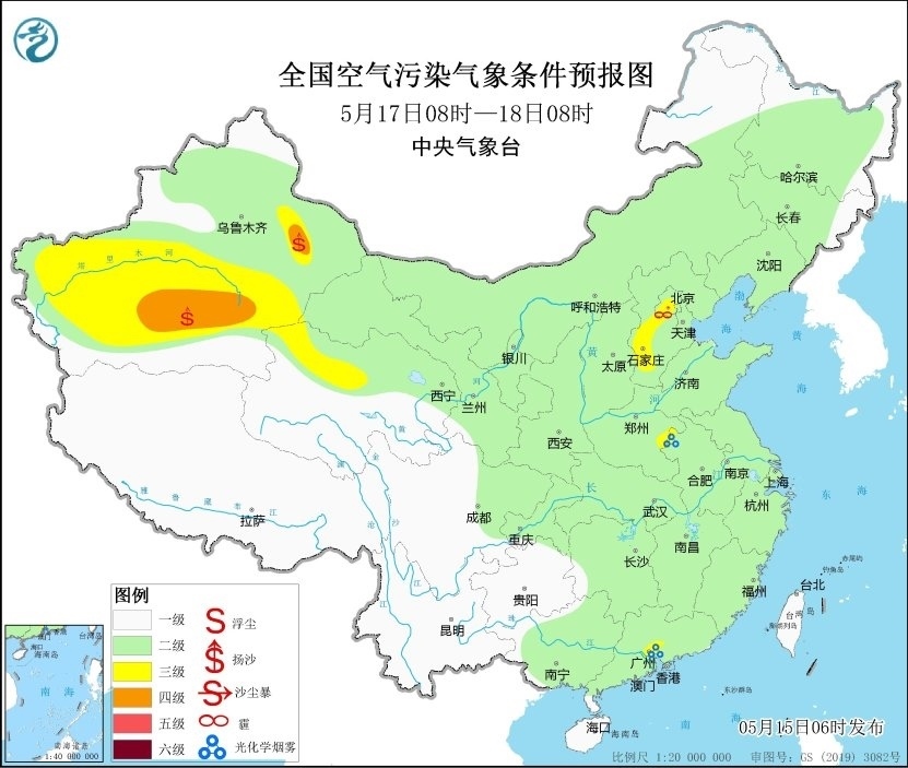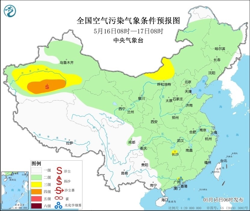 央視網(wǎng)消息:據(jù)中央氣象臺網(wǎng)站消息,預計,5月15日08時至16日08時,新疆南部和東部、甘肅西部、內(nèi)蒙古西部、青海北部以及河南中部等地有揚沙或浮塵天氣,其中新疆東部、甘肅西部、內(nèi)蒙古西部等地局地有沙塵暴,中央氣象臺5月15日06時繼續(xù)發(fā)布沙塵暴藍色預警。