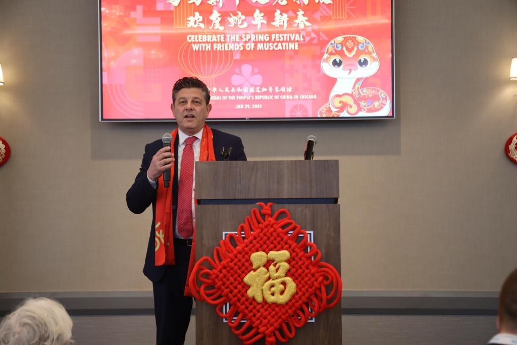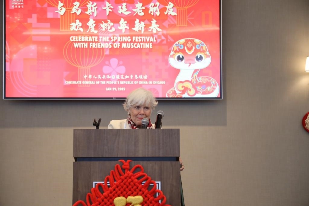 與中國有著多年情誼的艾奧瓦州友人系上了紅圍巾、紅領帶,和年輕人一起感受著蛇年新春的歡樂氛圍?!皩ξ襾碚f,同這么多美中兩國年輕人共慶蛇年,就是最好的慶祝方式?!碧m蒂說。