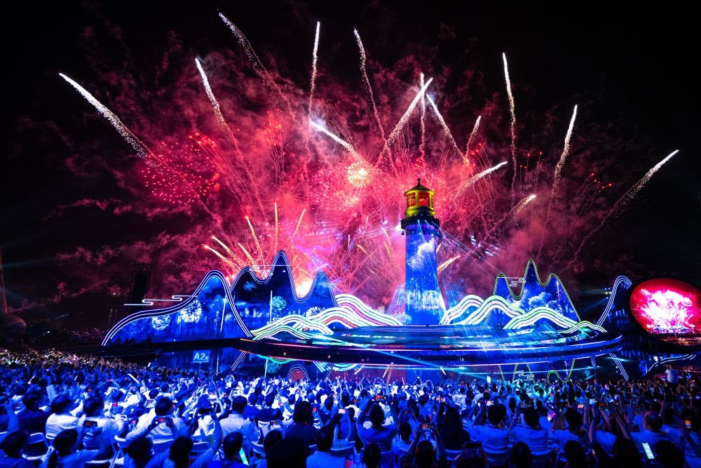 2023年9月16日,第十四屆中國(guó)長(zhǎng)江三峽國(guó)際旅游節(jié)在湖北宜昌市燈塔廣場(chǎng)開幕,這是觀眾在開幕式現(xiàn)場(chǎng)觀看表演。生態(tài)搭臺(tái)、文旅唱戲,長(zhǎng)江三峽國(guó)際旅游節(jié)是近些年三峽庫(kù)區(qū)把綠水青山轉(zhuǎn)變成“金山銀山”的生動(dòng)寫照。