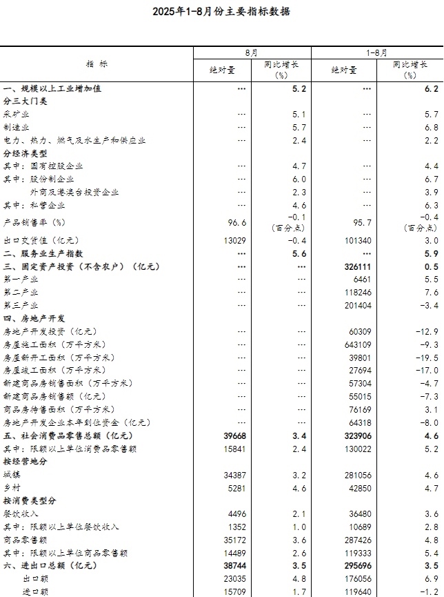 國(guó)家統(tǒng)計(jì)局:8月份國(guó)民經(jīng)濟(jì)運(yùn)行總體平穩(wěn)、穩(wěn)中有進(jìn)