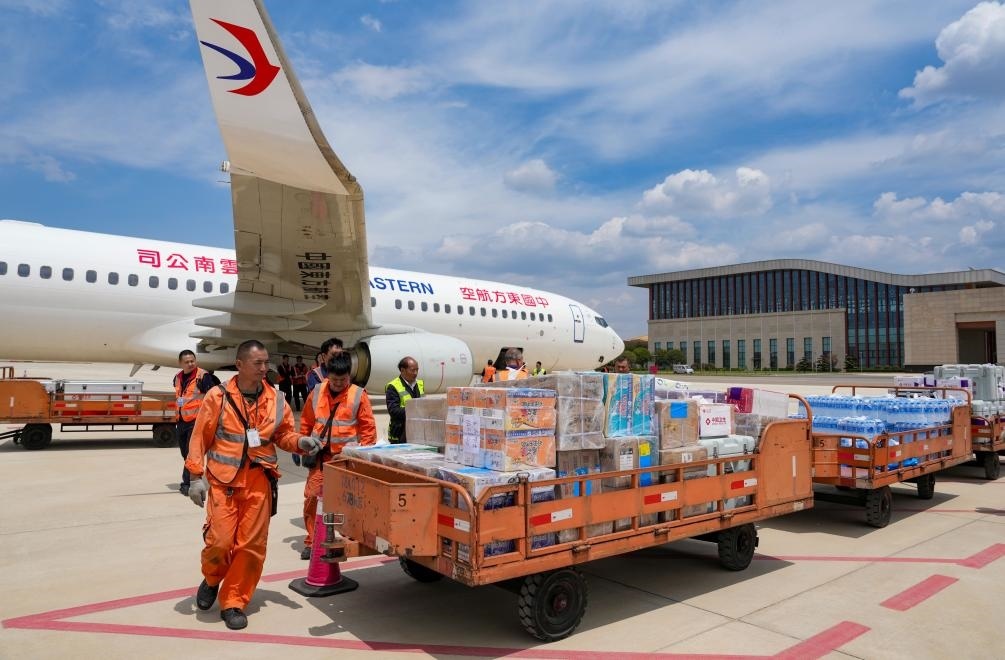 這是2025年4月19日在昆明長水機(jī)場(chǎng)拍攝的中國政府援緬衛(wèi)生防疫隊(duì)攜帶的物資。新華社記者 陳欣波 攝