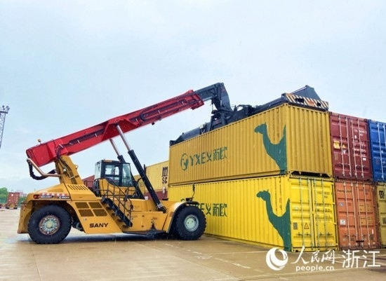 來到義烏鐵路口岸,往來車輛川流不息。繁忙運作的堆場內(nèi),義烏市陸港鐵路口岸發(fā)展有限公司工作人員何江橋正操作一臺碩大的集裝箱正面吊,將一個個海關查驗后的集裝箱送至龍門吊下,等待裝上即將發(fā)車的“義新歐”中歐班列。
