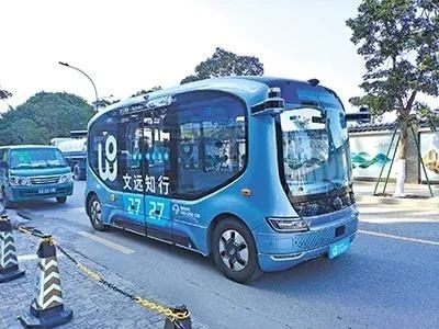 廣州生物島上的文遠(yuǎn)知行Robobus。卓泳/供圖
