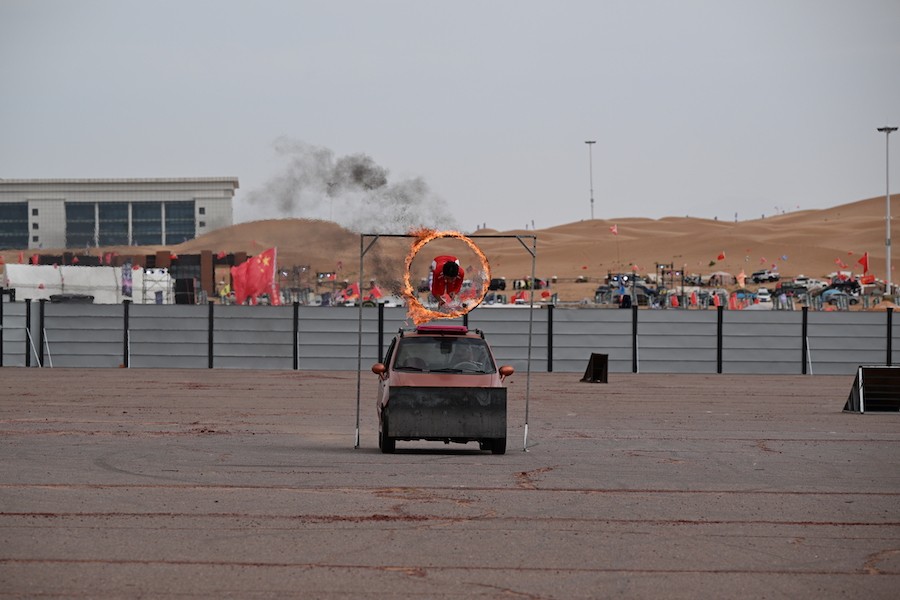 2025阿拉善英雄會汽車摩托車特技表演現(xiàn)場