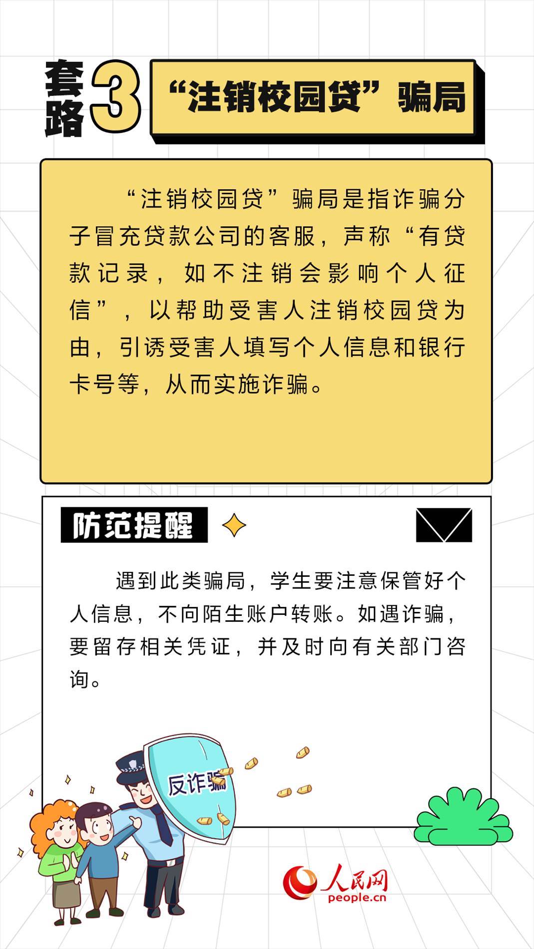 眼下正值開學(xué)季,學(xué)生們又開始了新學(xué)期的忙碌,殊不知詐騙分子也蠢蠢欲動(dòng),針對(duì)不同年齡段的學(xué)生“因人施騙”,令人防不勝防。人民網(wǎng)“求真”欄目整理了開學(xué)季六種常見的詐騙套路,提醒家長(zhǎng)和學(xué)生注意防范。