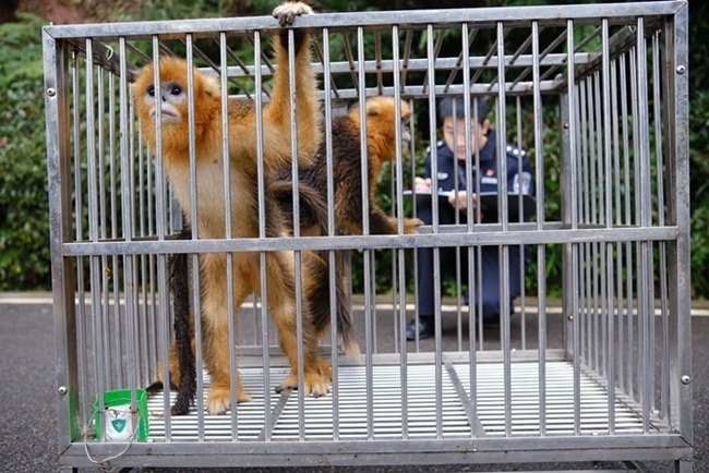 被解救的金絲猴。天全縣公安局供圖