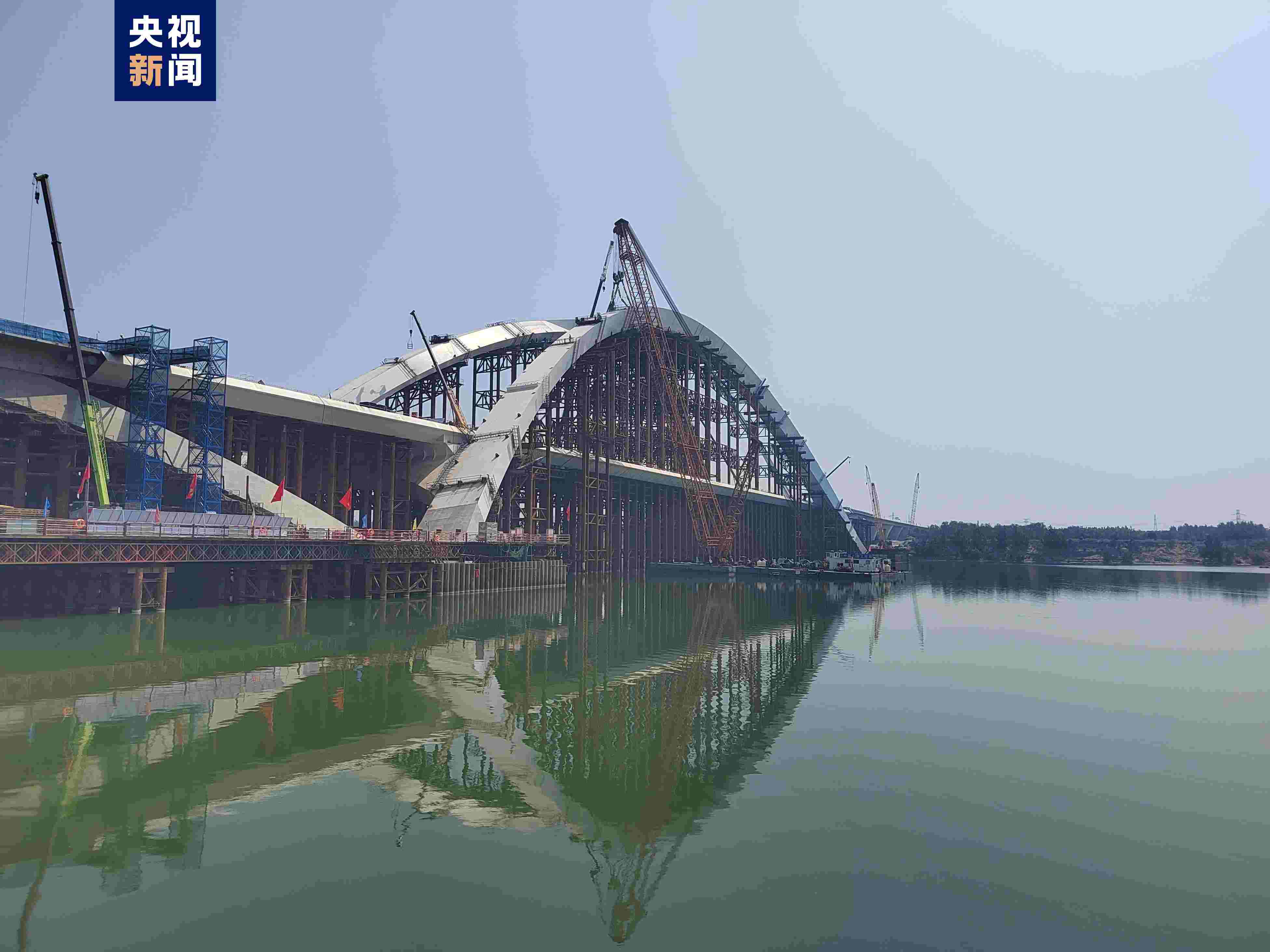 京雄大橋位于永定河與京雄高速“交匯點(diǎn)”,全長(zhǎng)1.62公里,其中東引橋410米、西引橋690米、主橋520米,主拱跨度達(dá)300米。大橋主梁寬度達(dá)48米,未來(lái)將承載京雄高速雙向八車(chē)道的車(chē)流。