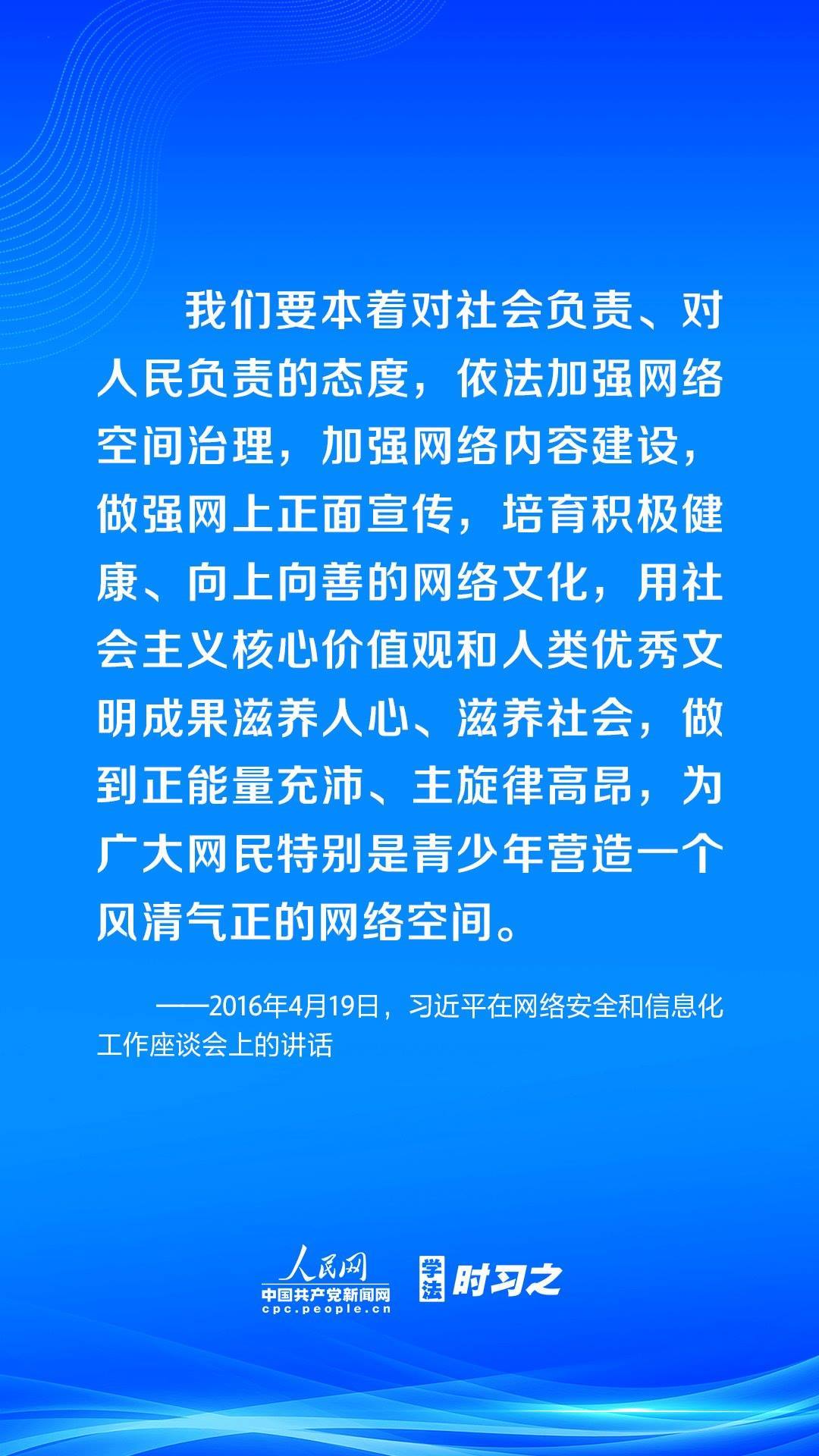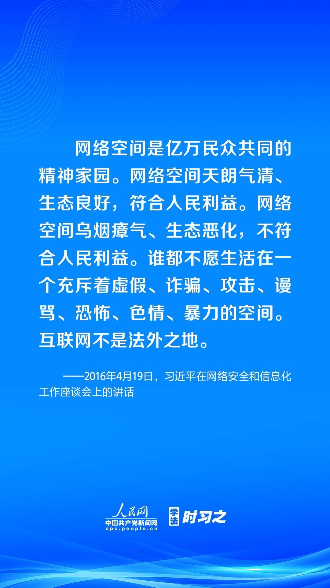 營造風(fēng)清氣正的網(wǎng)絡(luò)空間,離不開法治手段的保障。黨的十八大以來,習(xí)近平總書記高度重視網(wǎng)絡(luò)法治工作,強(qiáng)調(diào)要堅持依法治網(wǎng)、依法辦網(wǎng)、依法上網(wǎng),讓互聯(lián)網(wǎng)在法治軌道上健康運行。