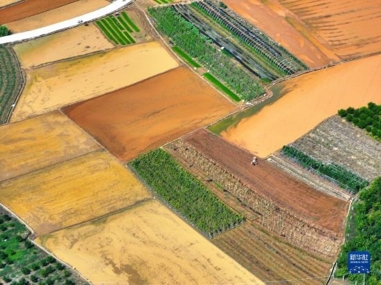 7月21日,農(nóng)民在南寧市青秀區(qū)長塘鎮(zhèn)耕田(無人機(jī)照片)。新華社記者 周華 攝